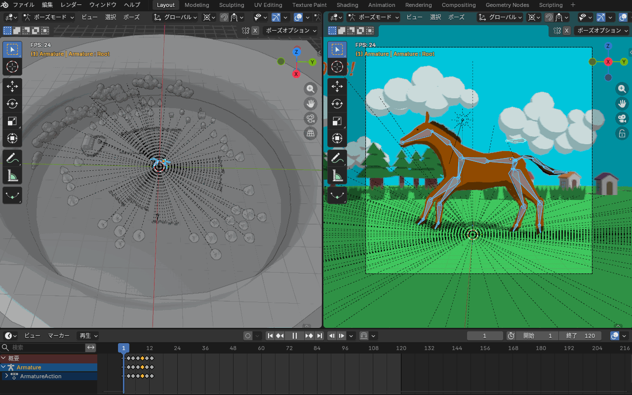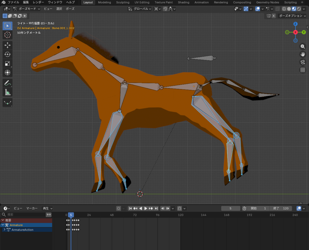 【Blender 5.0】馬(午)のアニメーション作成【ループアニメーション】