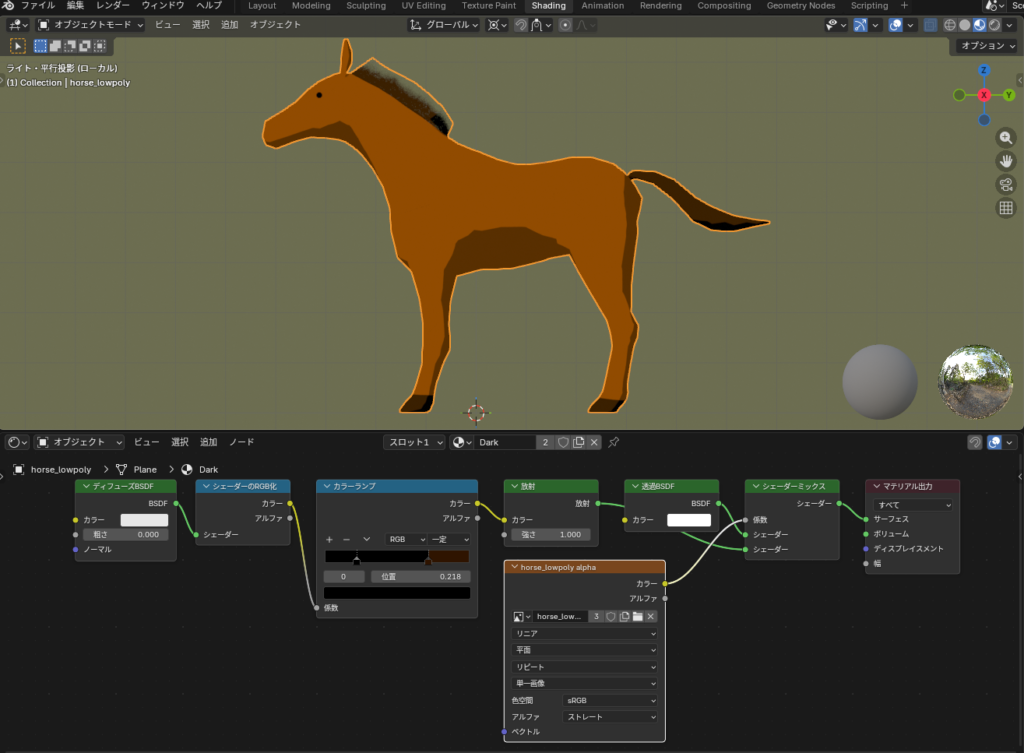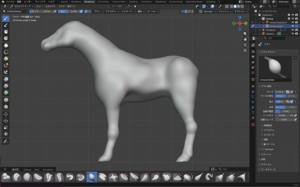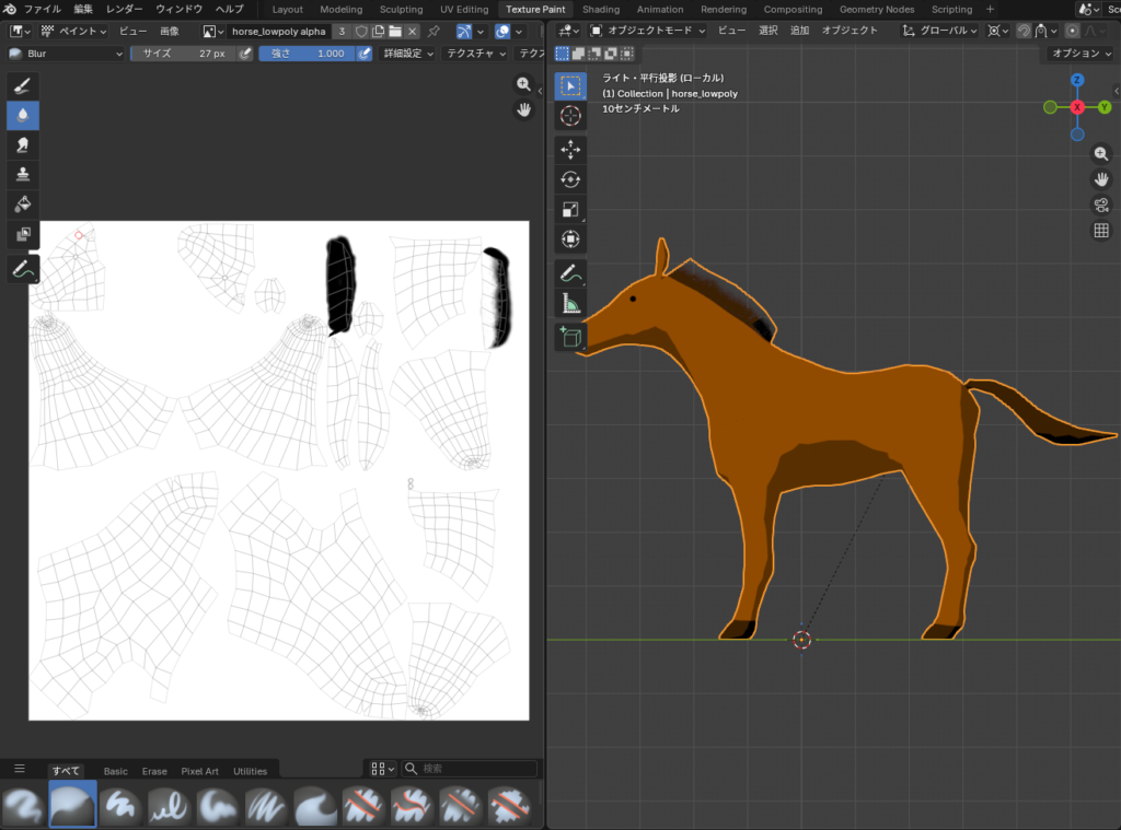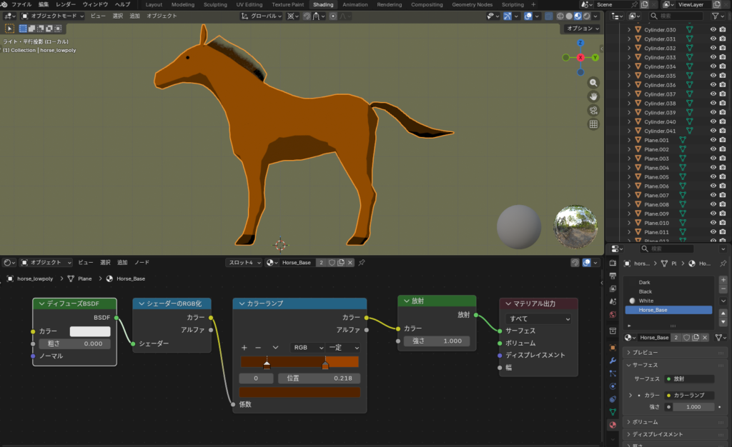 ちなみに、今回作成した馬はずっと横向きなので、制作地は横から見たときのリアルさを考慮して形状の調整を行いました。