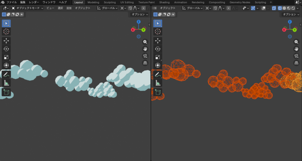 遠景の雲は、ICO球を複製し作成しています。