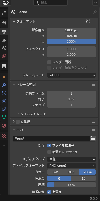 アニメーションレンダリングの設定は以下の通りです。